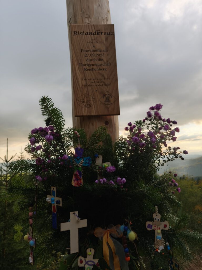 1979 wurde das erste Kreuz auf dem Binstand durch die Freiwillige Feuerwehr Reichenberg errichtet und geweiht. 1996 wurde es zum erstenmal erneuert. 2008 wurde das Kreuz wiederum erneut und auch ein Herrgott, welcher gestiftet wurde angebracht. 2025 wird nun zusammen durch den Dorfverein und dem Feuerwehrverein wieder ein neues Kreuz auf dem Binstand durch Pfarrer Tobias Keilhofer geweiht. Außerdem wurde ein Kreuzweg, welcher entlang des Wanderweges zum Gipfel führt geweiht. Der Kreuzweg wurde von Eichinger Sepp gestiftet und erbaut. Bei schönstem Wetter und zahlreichen Gästen fand die Weihe statt. Beim anschließenden gemütlichen Beisammensein im Dorfhaus wurde noch das ein oder andere Mal darauf angestoßen.
